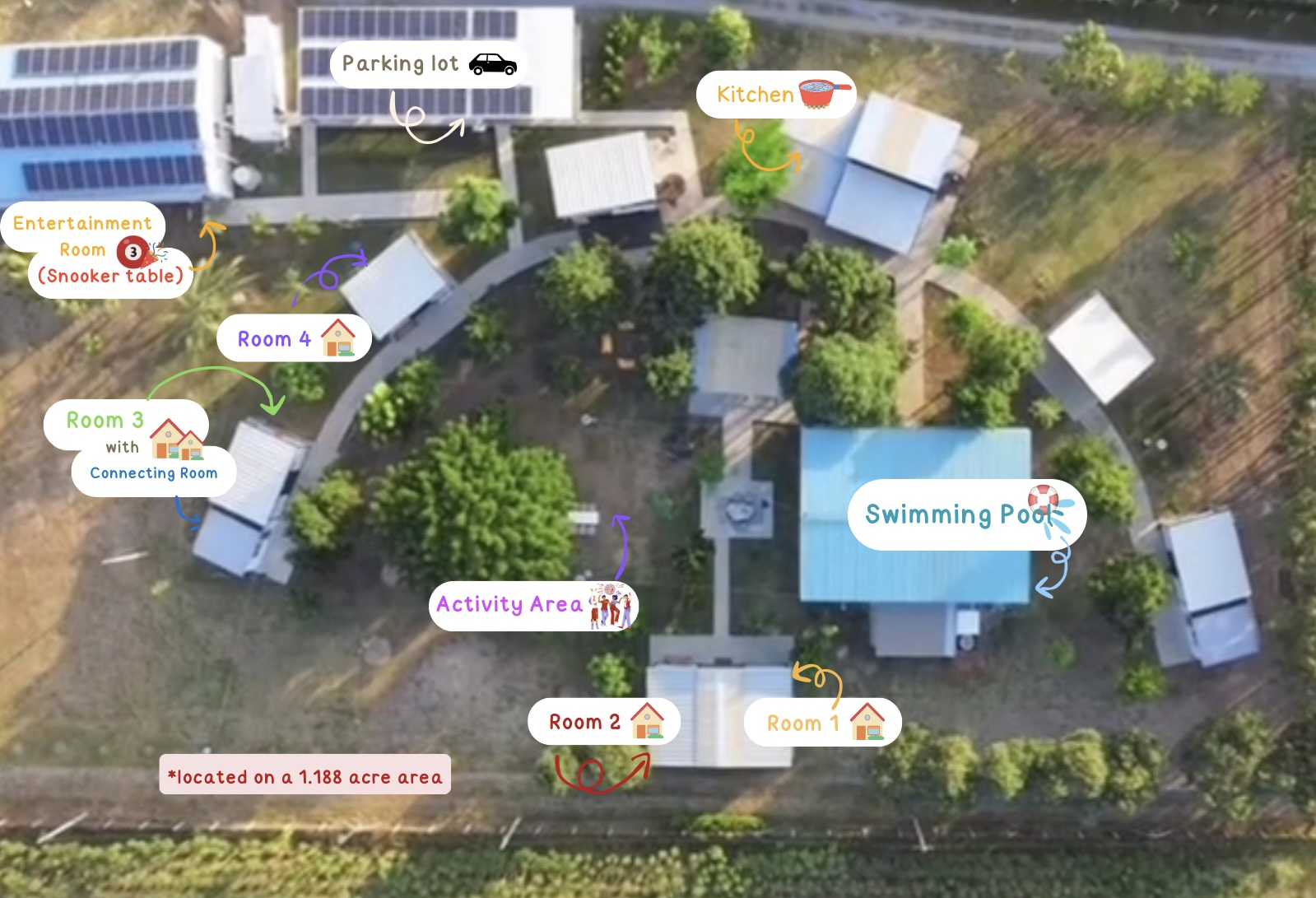 We offer two distinct types of accommodation. Our private Pool Villa, available daily, is perfect for groups seeking a private, fun-filled getaway—with a large indoor pool, entertainment room, snooker table, karaoke, and a mini home theater. Plus, we’re pet-friendly!