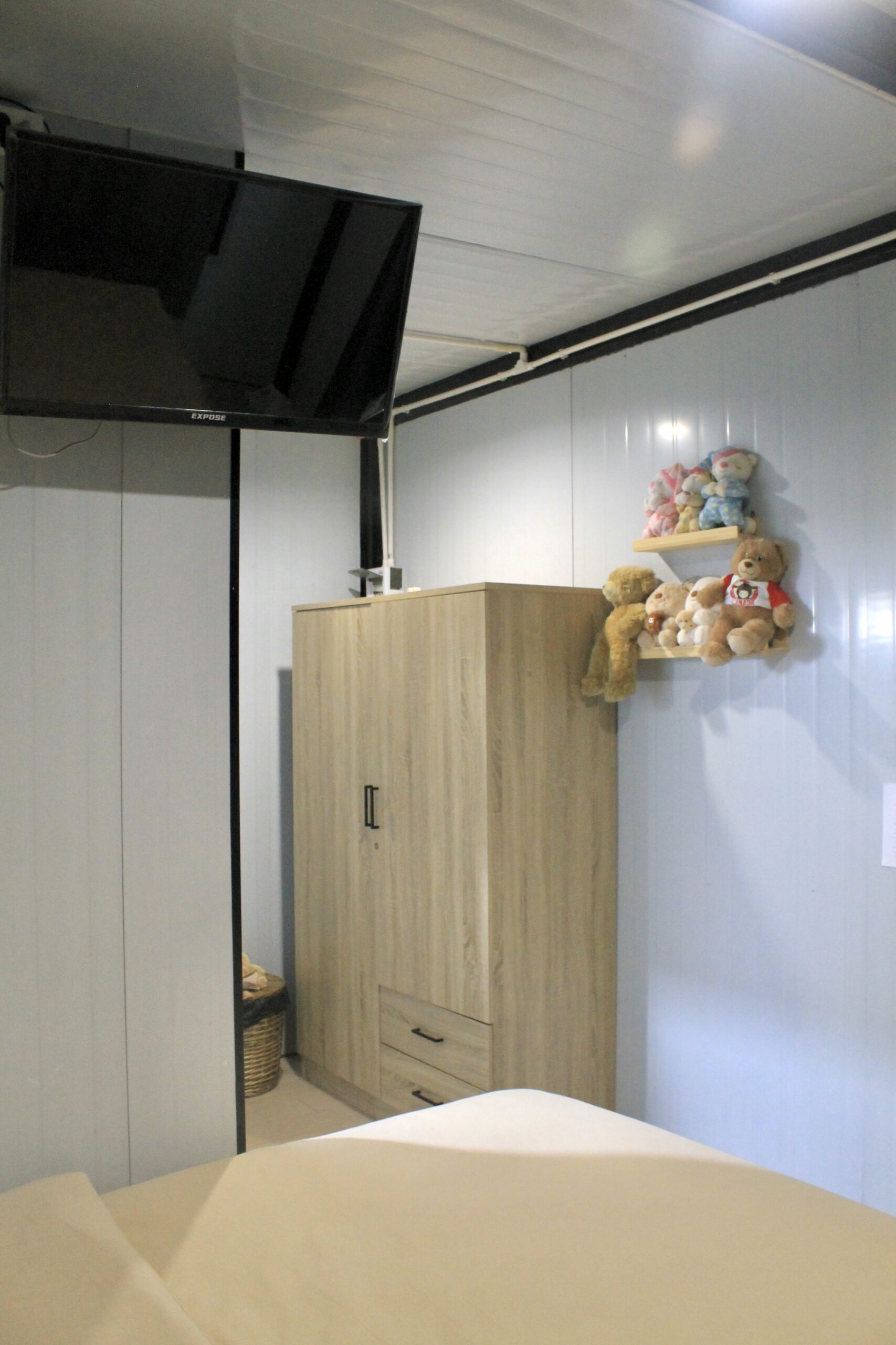 It includes an ensuite bathroom with a shower, a TV, a wardrobe, air-conditioning, Wi-Fi, and refrigerator.